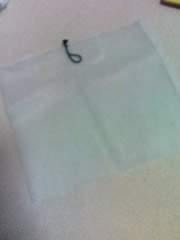 1.排水溝ネットの底に少し切れ目を入れ、紐を内側に入れます。