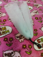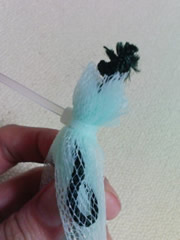 白のネットにピンクのリボンなんかで作るとかわゆいんじゃないかなぁ〜と思います。